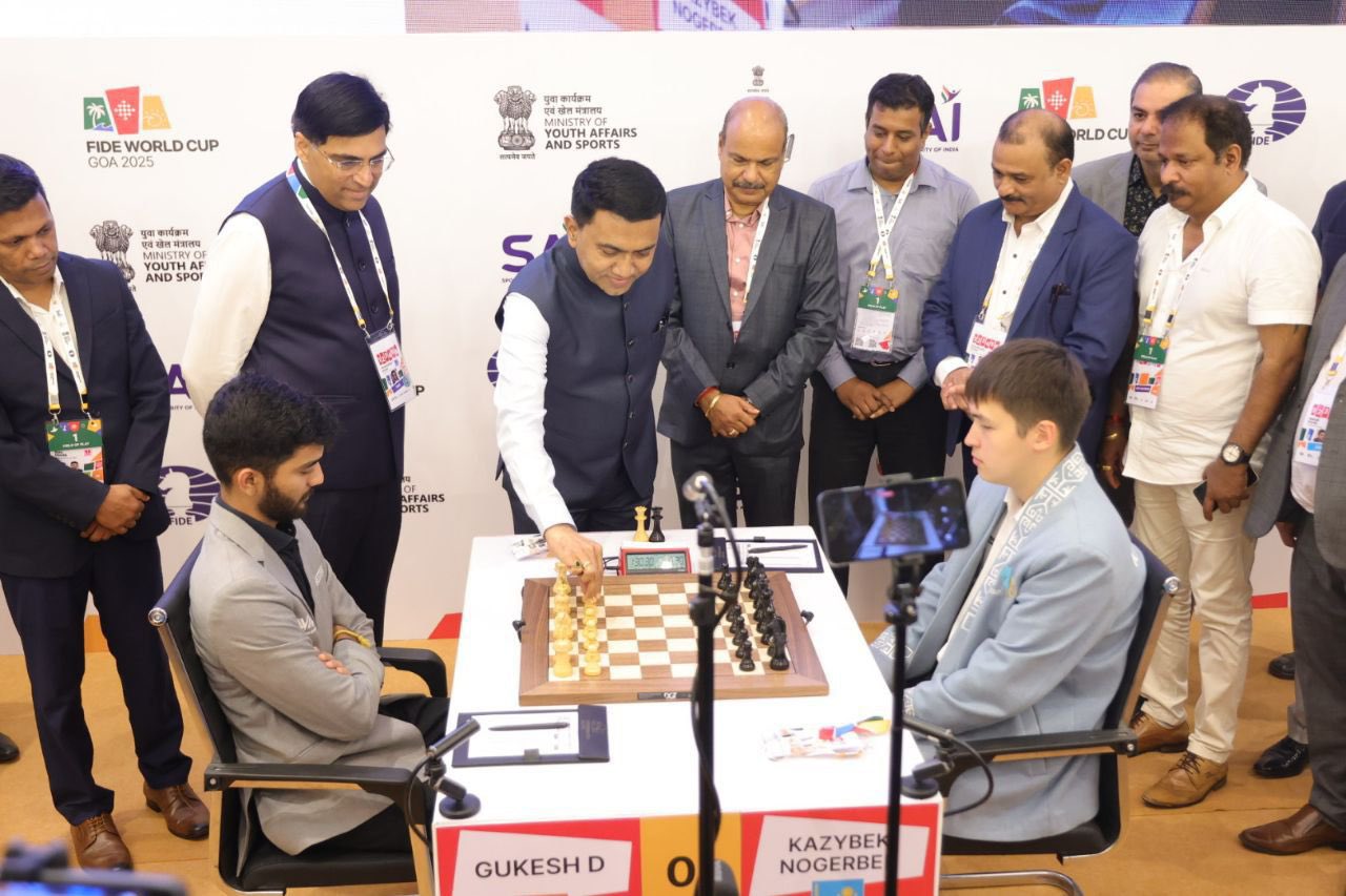 On the sidelines of the prestigious FIDE World Cup 2025 being played in North Goa, the Chief Minister graced the occasion on Tuesday to make the ceremonial first move in the match between World Champion D Gukesh and GM Kazybek Nogerbek; in the presence of Grandmaster Viswanathan Anand, MLA Pravin Arlekar, Grandmaster Abhijeet Kunte among others.
