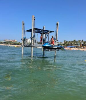 Each Seahorse unit accommodates four to six lifesavers and is equipped with a jet ski ramp, rescue boards, surfboards and rescue tubes. A jet ski stationed on the platform enables immediate water entry, while the elevated position provides a wider field of view of nearshore swimming areas.