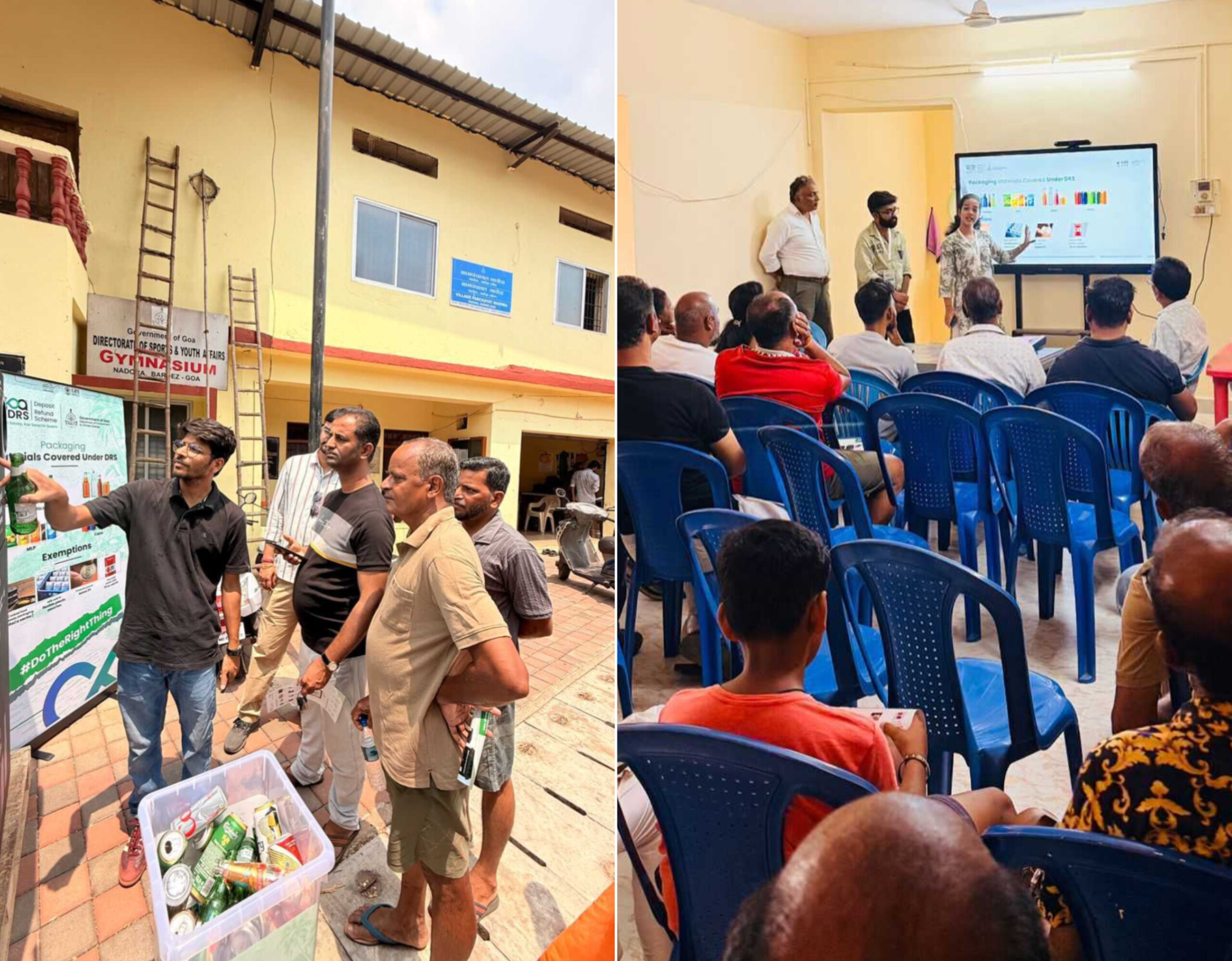 The Deposit Refund Scheme (Goa DRS) conducted a comprehensive awareness drive at the Gram Sabha held at Village Panchayat Nadora, Bardez, Goa on Sunday. The initiative aimed at educating local residents about the Deposit Refund Scheme, a key environmental and consumer initiative, encouraging the return of used non-biodegradable DRS friendly packaging in exchange for refunds, thereby promoting packaging waste reduction.
