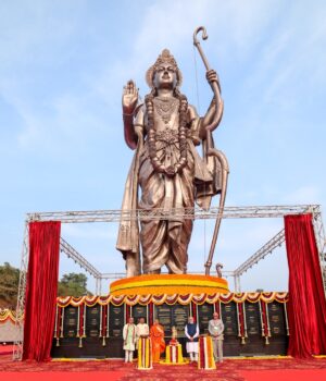 Prime Minister Modi remarked that when an institution stands on the foundation of truth and service, it does not waver with the changes of time but instead gives society the strength to endure. He highlighted that today, continuing this tradition, the Math is writing a new chapter. He noted that a grand 77-feet tall bronze statue of Lord Shri Ram has been installed here. He mentioned that just three days ago he had the privilege of hoisting the Dharma Dhwaja atop the magnificent Ram Janmabhoomi Mandir in Ayodhya, and today he has the good fortune of unveiling the grand statue of Lord Shri Ram here. He further remarked that on this occasion a theme park based on the Ramayana has also been inaugurated.