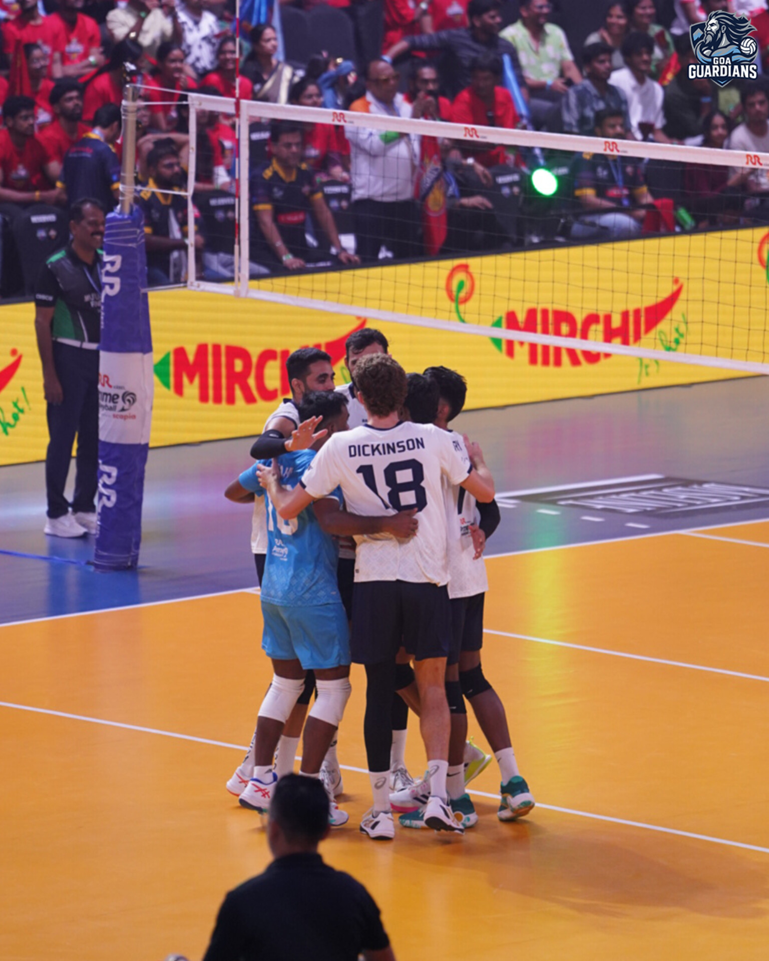 Goa Guardians bounced back in style at the RR Kabel Prime Volleyball League powered by Scapia, securing a resounding 3–0 (15-11, 15-8, 15-6) win over the Kolkata Thunderbolts at the Gachibowli Indoor Stadium on Tuesday.