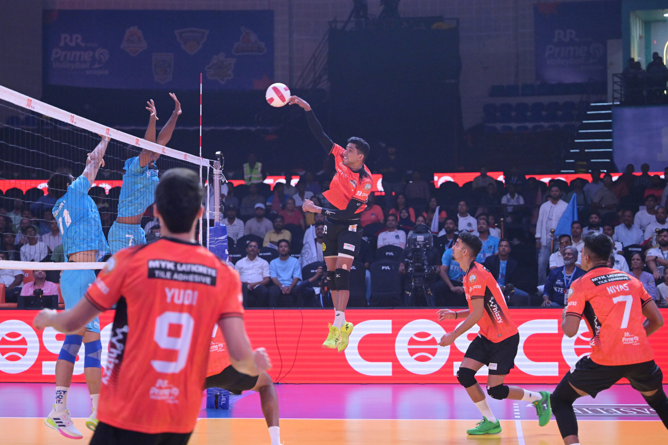 Hyderabad began the first set on the front foot, with Brazillian Vitor Yudi Yamamoto and Sahil Kumar shining at the net. While the Guardians’ Nathaniel Dickinson and Chirag Yadav kept them in touch with powerful spikes. However, Sahil Kumar’s thunderous spike helped the Black Hawks claim the first set.