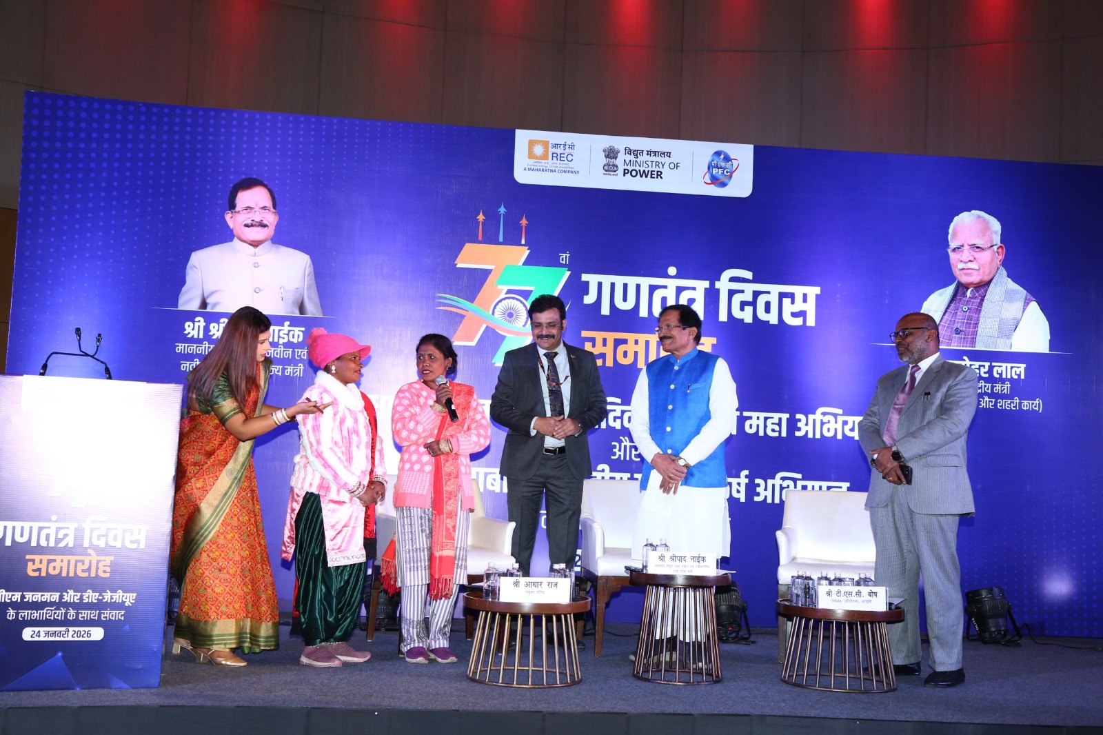 On the eve of the 77th Republic Day, Minister of State for Power and New & Renewable Energy, Shripad Yesso Naik interacted with beneficiaries of flagship schemes of Government of India,  PM-JANMAN, DA-JGUA and PM-KUSUM,  who have been specially invited to attend the Republic Day Celebration this year.